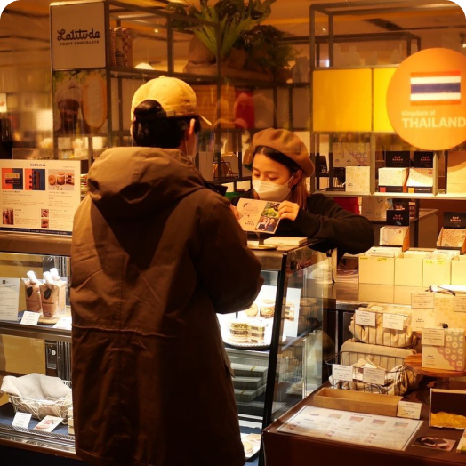 Discover all our packaged chocolate products for retail, gift shops and coffee shops. Our chocolate is available in Thailand, Japan, Canada and the USA.