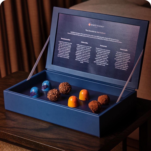 Kad Kokoa collaborate with hotels, companies and organization of all sizes to develop meaningful goods and packaging that help them convey deliciousness to their customers.